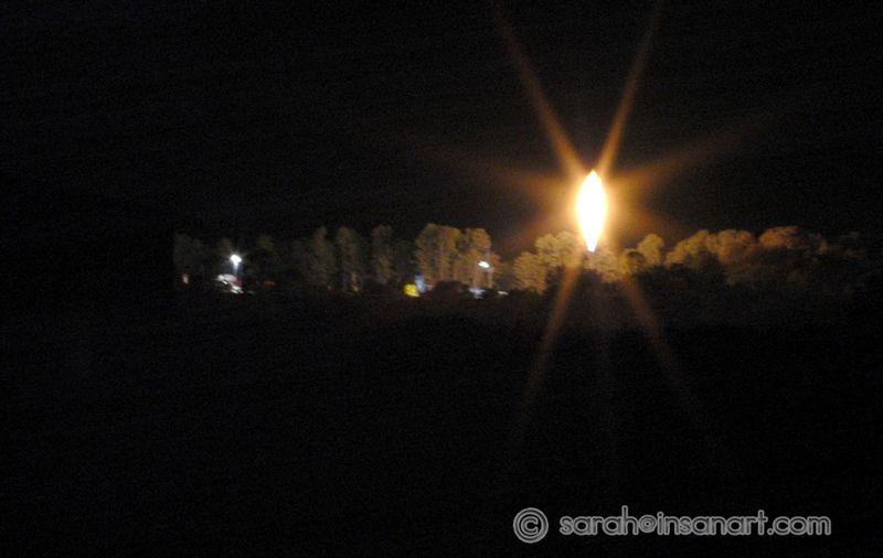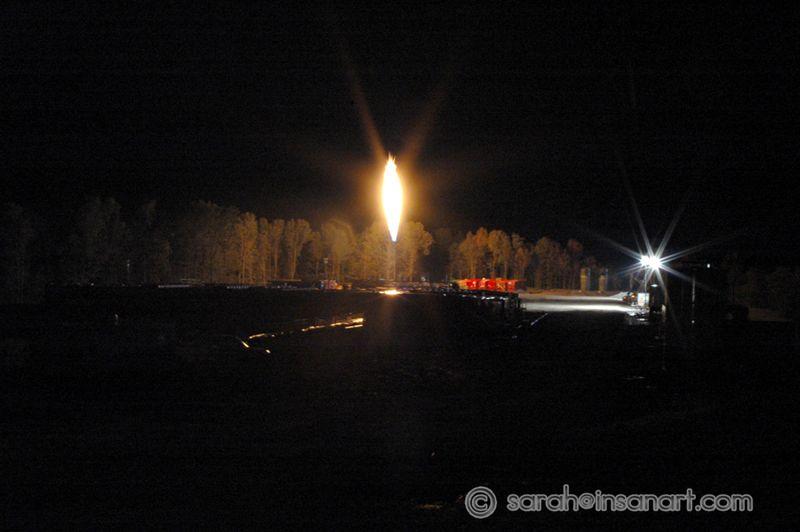 I have brightened this shot slightly to show the amount of light flickering on this house, just 1/3 mile north of the well (literally right below it in the valley). It was a 30 second long shot.