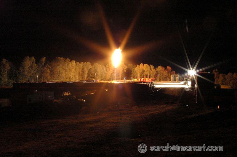 This is a view of the site from the neighboring farm NE of the site. The light is almost as bright as living next to a Walmart supercenter - of course, Walmart doesn't hiss with the sound a million times louder than a blowtorch. Better photo coming soon (also will try to get a nice shot of the cows down the road grazing, lit up like it's broad daylight).