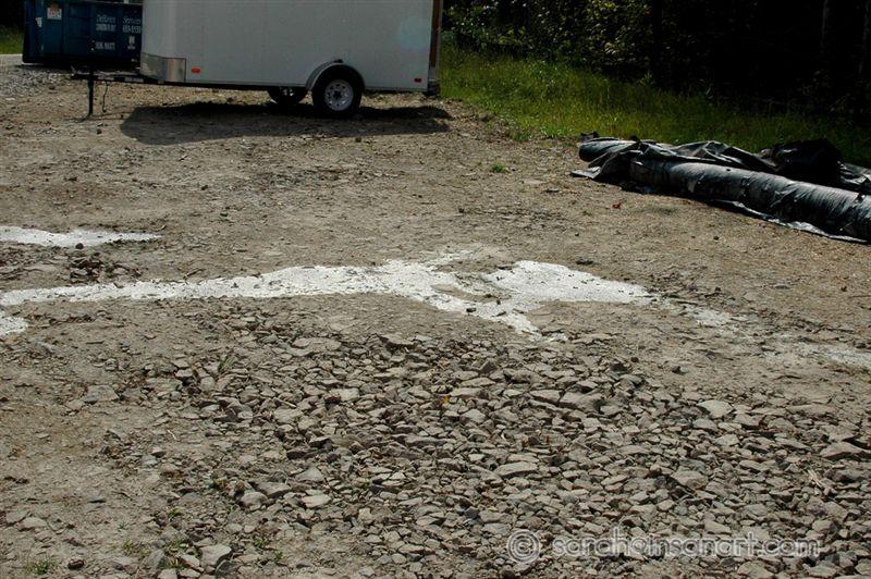 This is a small spill of some nasty looking gray sludge near the entrance to the well pad. I had to walk right past it to get a shot of the pond.