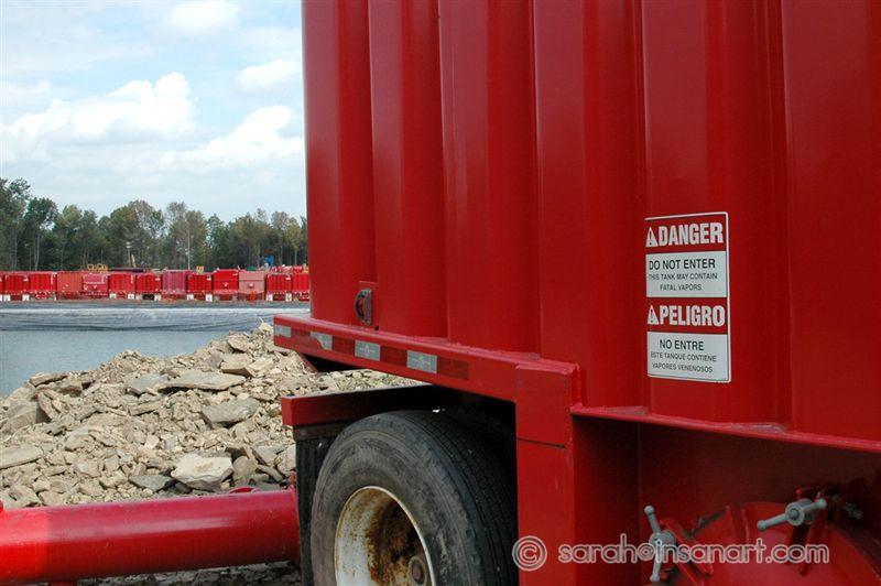There were a series of these tanks connected to the frac water holding pond - NOTICE THE SIGN!!! - "DANGER DO NOT ENTER This tank may contain fatal vapors"