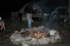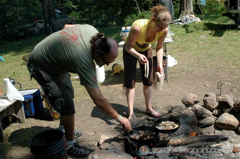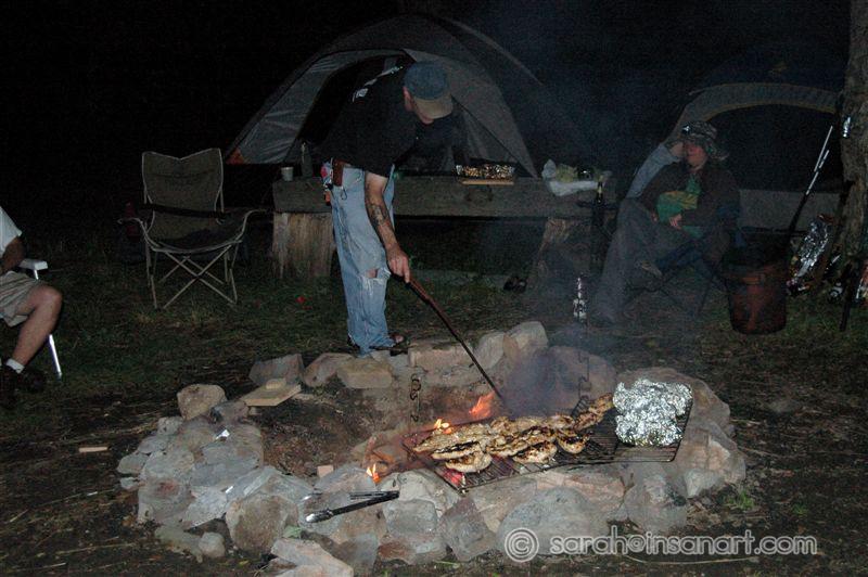 Dave tends the fire